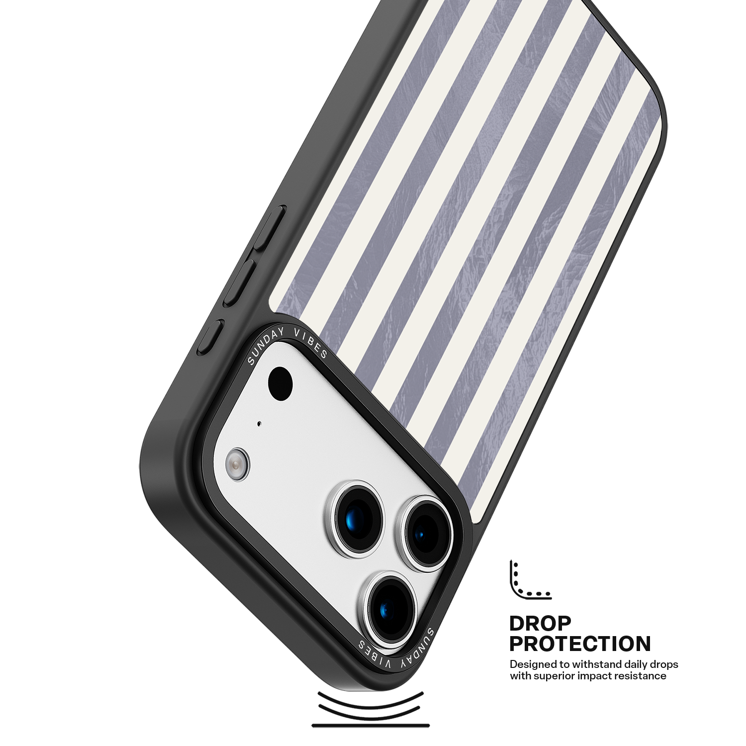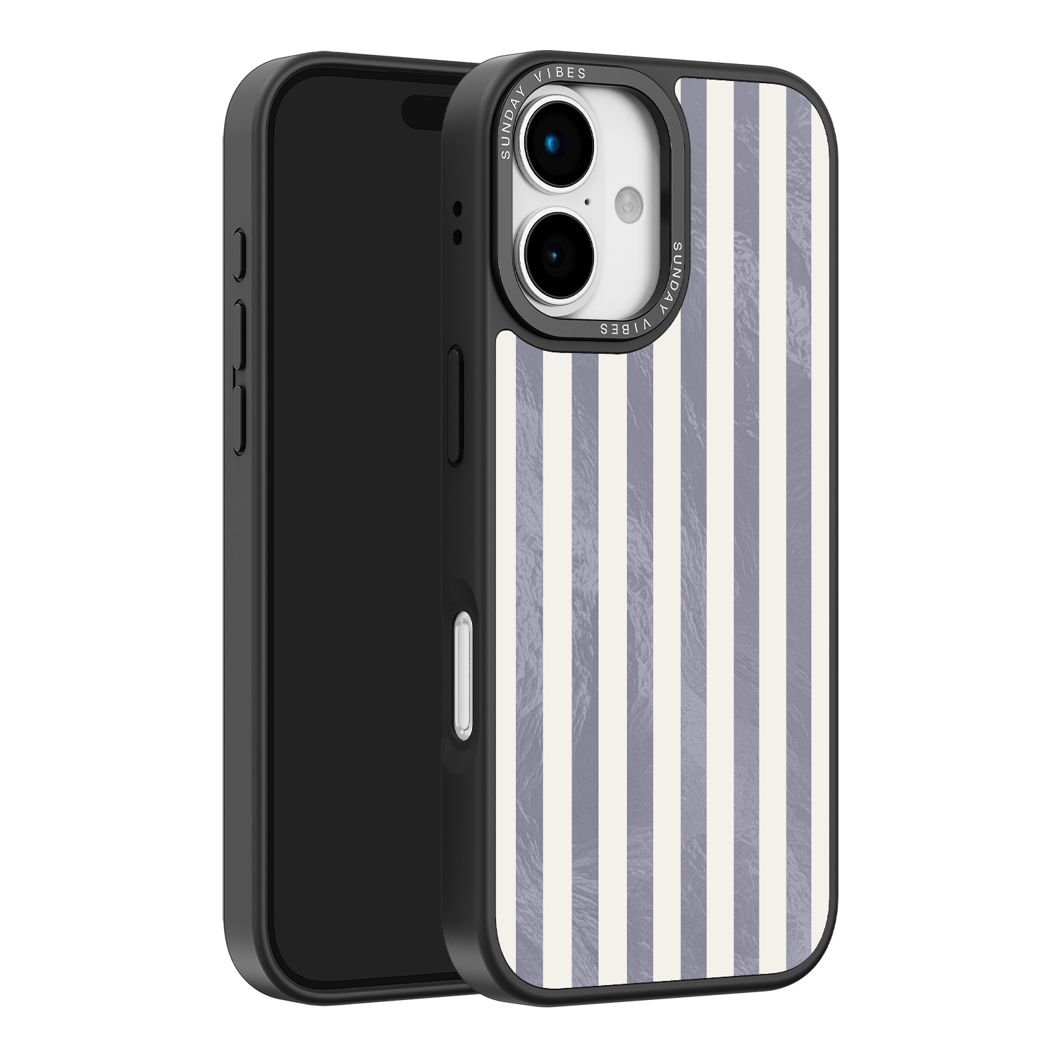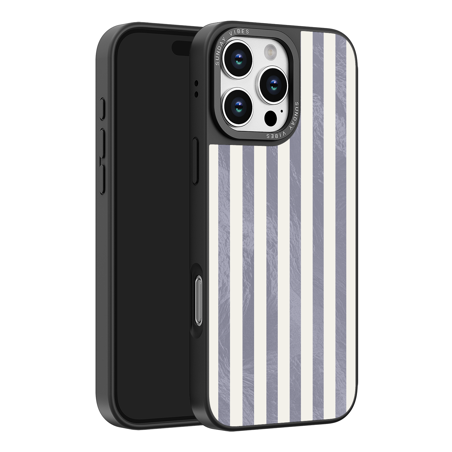 Elevate your look with the moody, modern glamour of the Silver Coast iPhone Case. The pattern features alternating stripes where the dark grey sections catch the light with an intense holographic shimmer, contrasting sharply with the matte cream bands. This gorgeous blend of classic geometry and shimmering texture ensures a uniquely stylish statement piece.