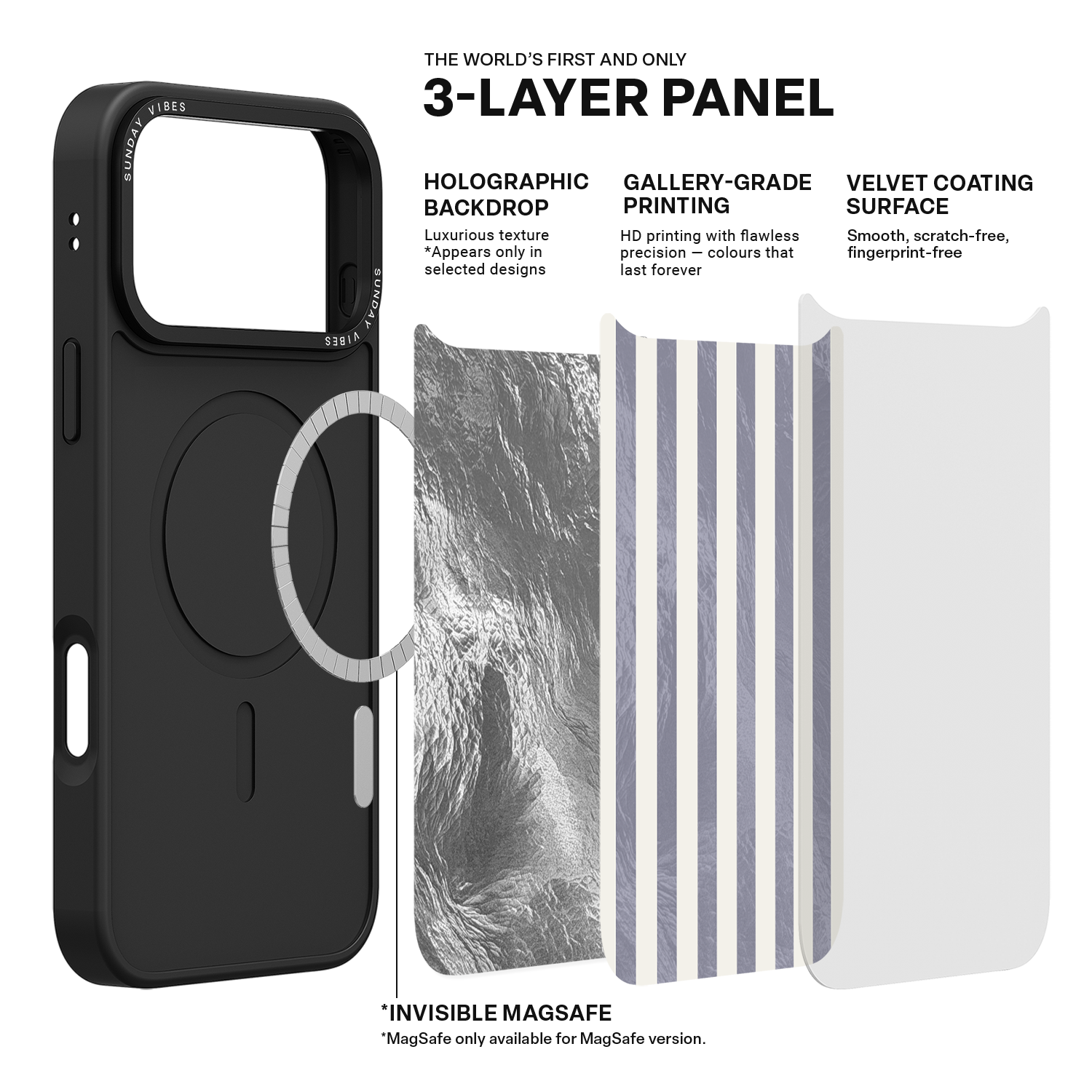 Engineered to be comfortable and highly dependable, this protective phone case maintains an exceptionally slim and lightweight profile. The full defence system includes excellent shockproof technology, along with raised edges at the camera and front bumper for crucial screen protection. Durability is assured by the premium 3-layer back panel construction, and for MagSafe version cases, the invisible built-in MagSafe function is ready to go.