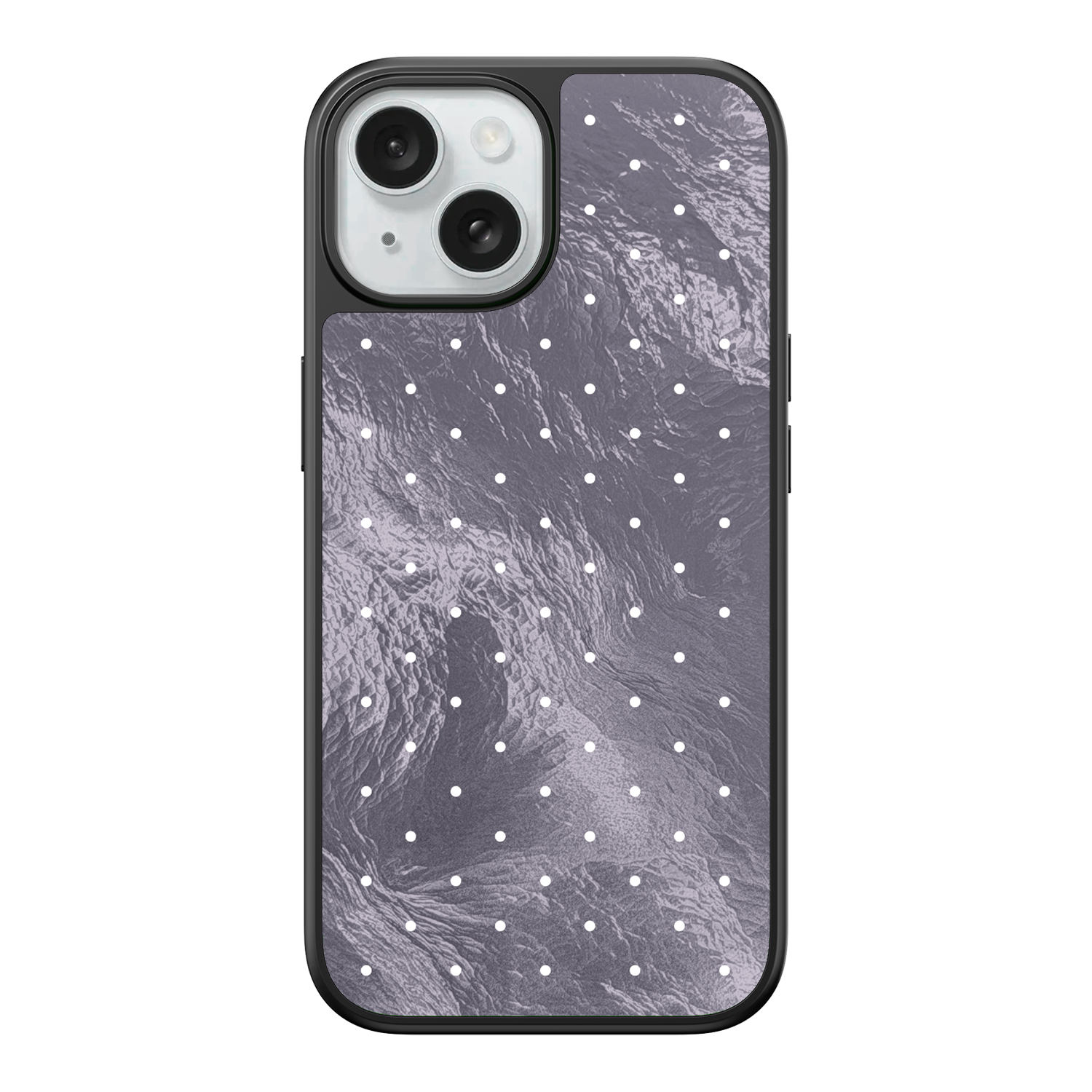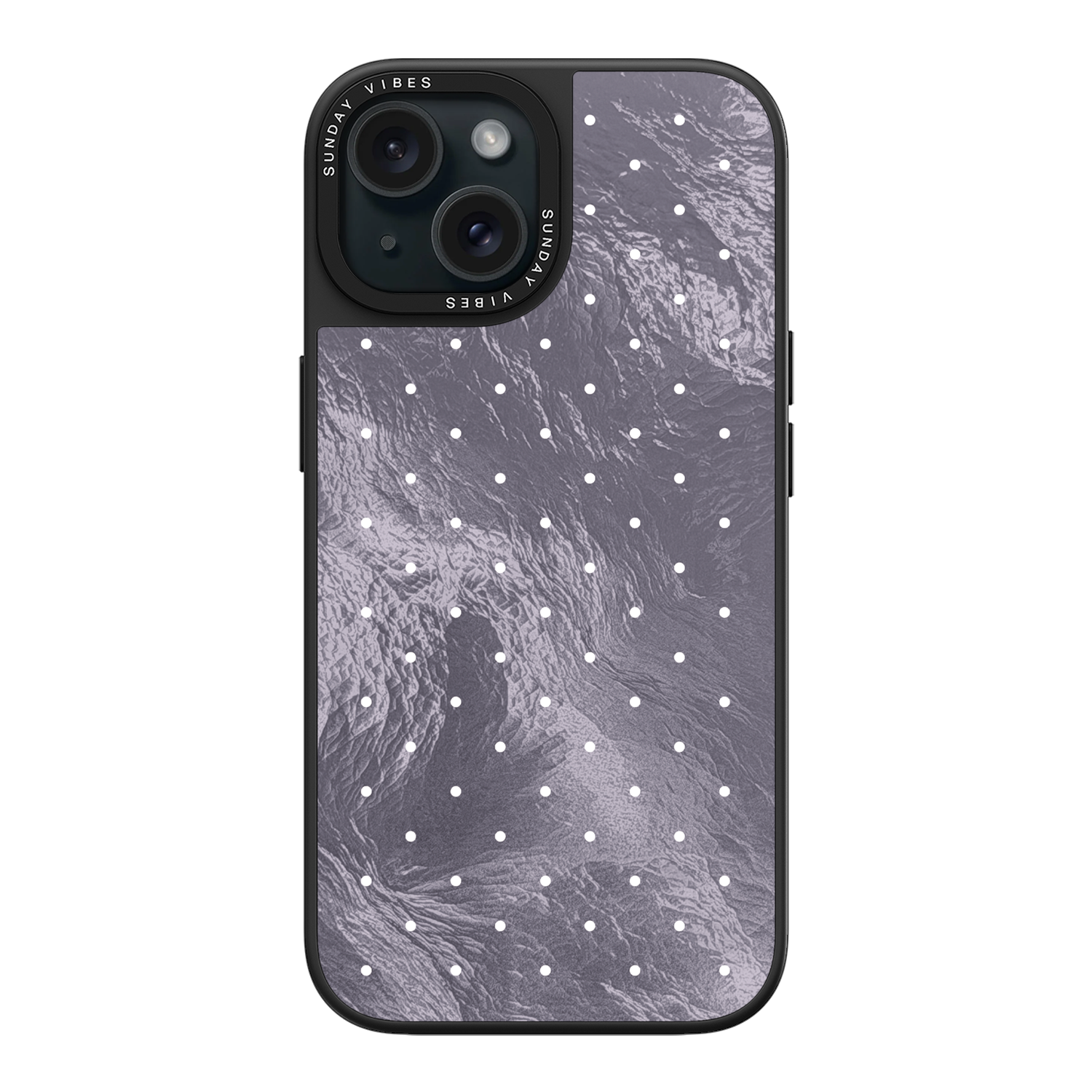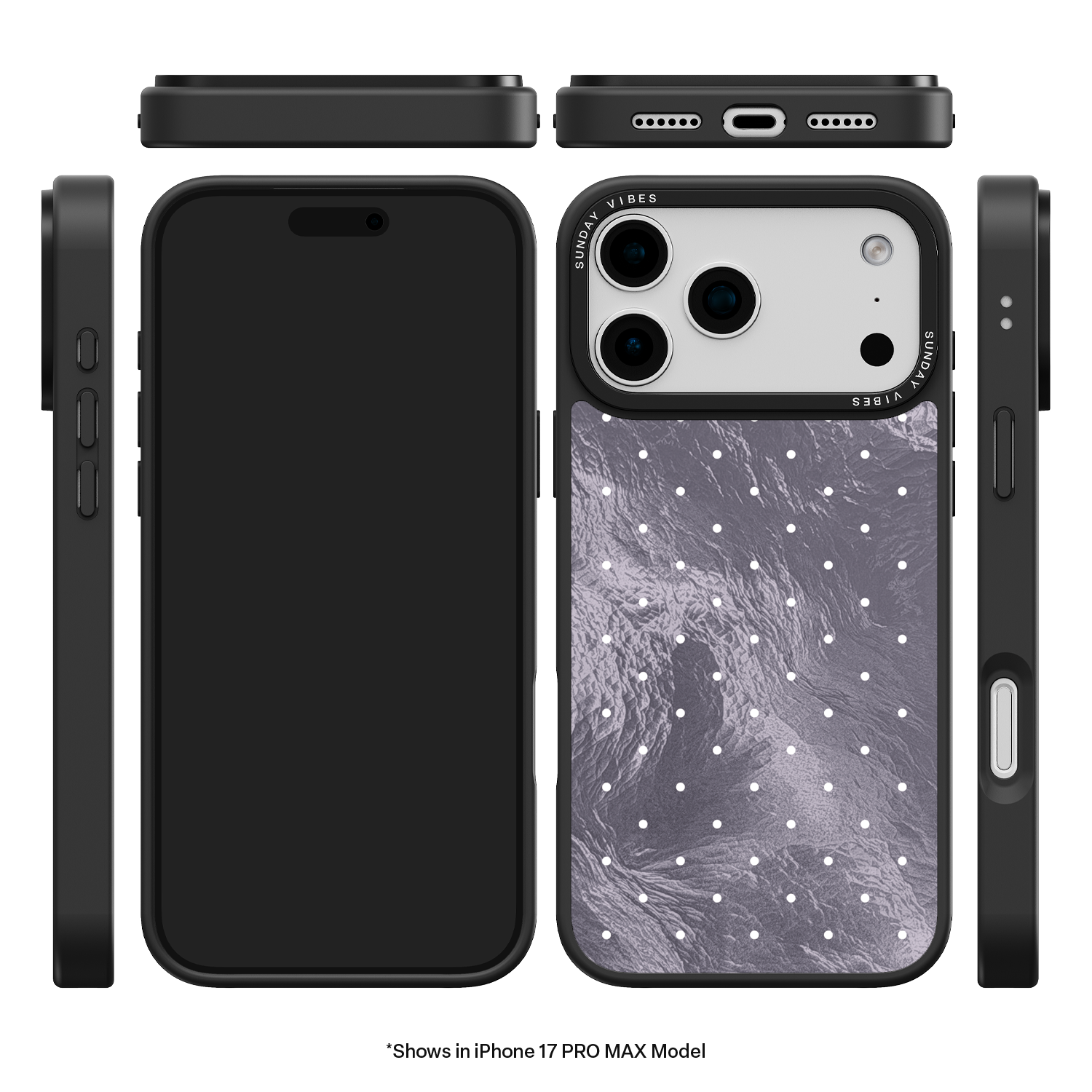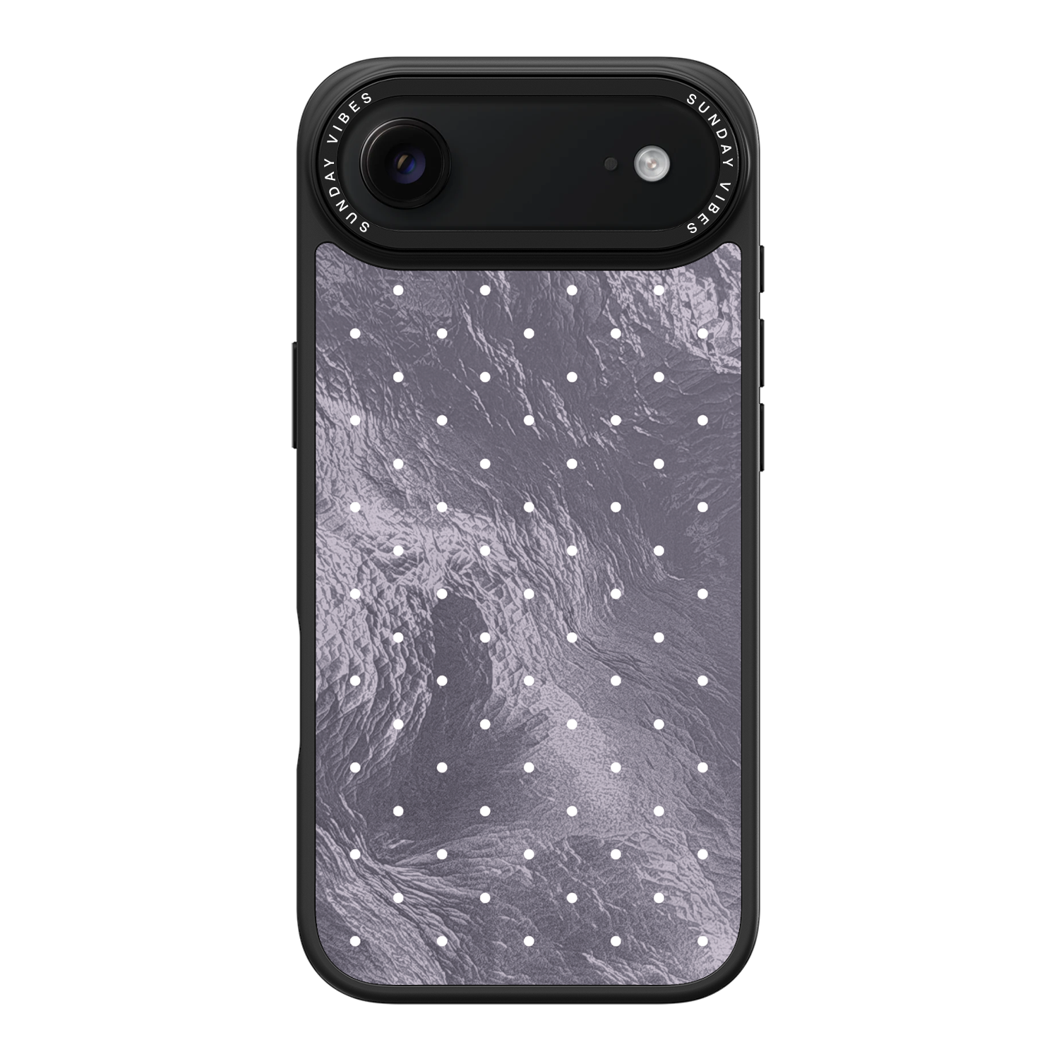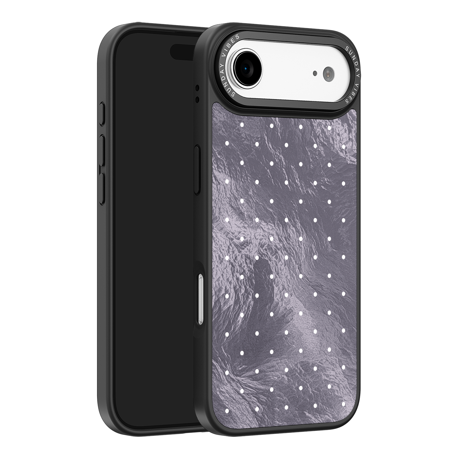 Adorn your device with the ethereal charm of the Silver Moon Dots iPhone Case, silver addon a bit purpleish. This dreamy design features crisp white dots scattered across a pale very light purple/blue holographic background that shimmers and shifts, evoking a serene sky or sparkling water. This gentle yet glamorous aesthetic ensures your phone is a truly captivating accessory. The structural integrity is delivered via a premium 3-layer back panel: featuring a base holographic layer with texture, an ultra HD gallery print layer, and a velvet smooth anti-scratch and anti-fingerprint top coating.