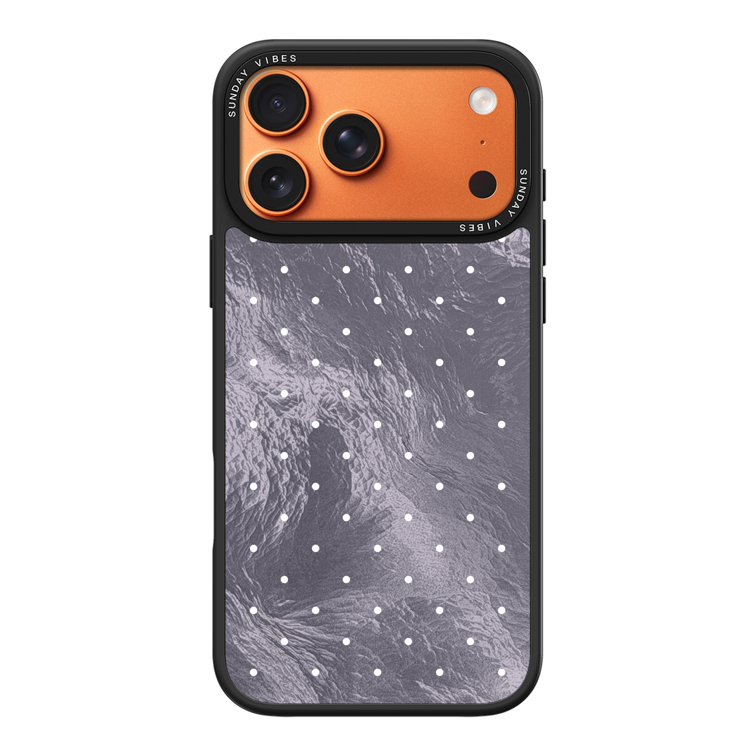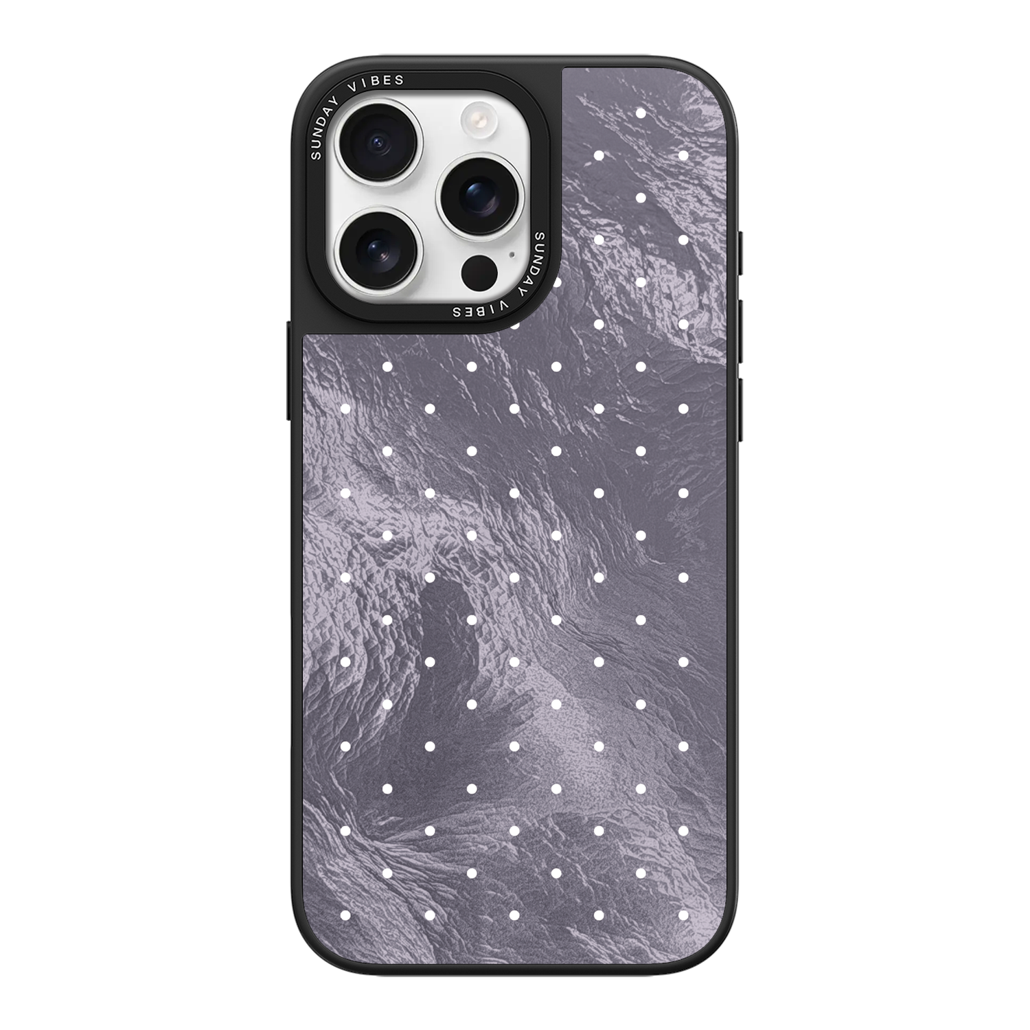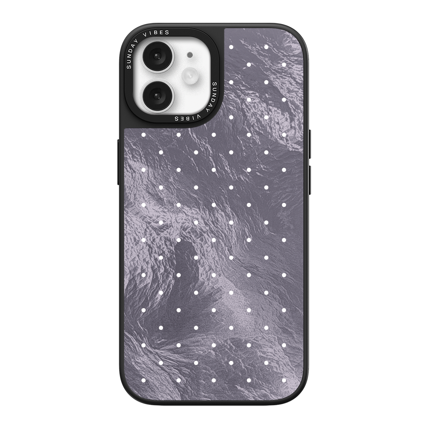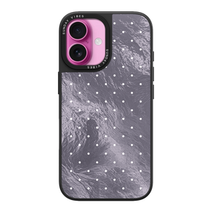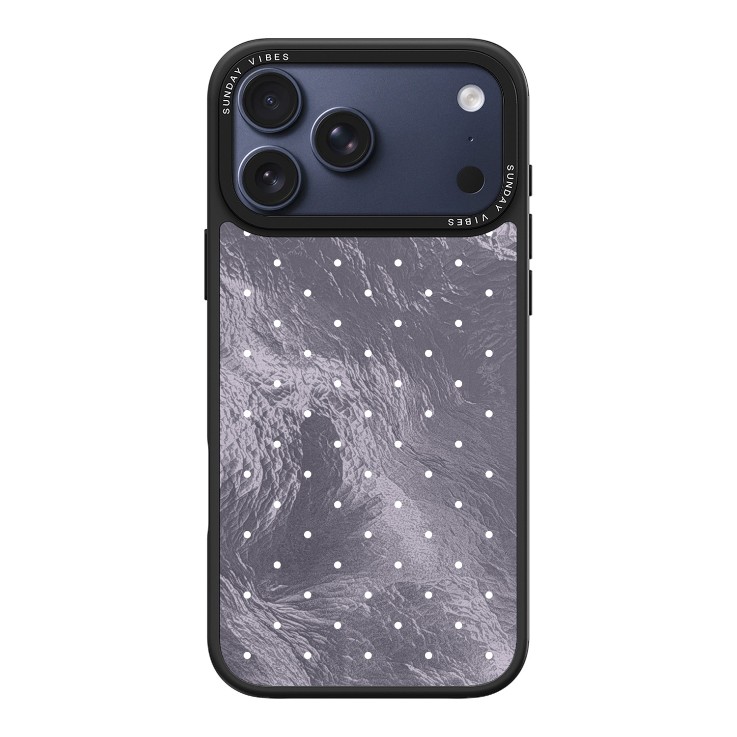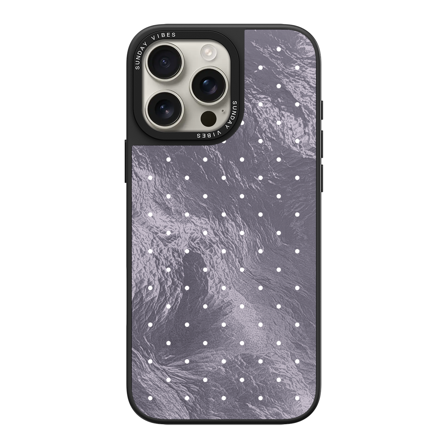 Adorn your device with the ethereal charm of the Silver Moon Dots iPhone Case, silver addon a bit purpleish. This dreamy design features crisp white dots scattered across a pale very light purple/blue holographic background that shimmers and shifts, evoking a serene sky or sparkling water. This gentle yet glamorous aesthetic ensures your phone is a truly captivating accessory. The structural integrity is delivered via a premium 3-layer back panel: featuring a base holographic layer with texture, an ultra HD gallery print layer, and a velvet smooth anti-scratch and anti-fingerprint top coating.