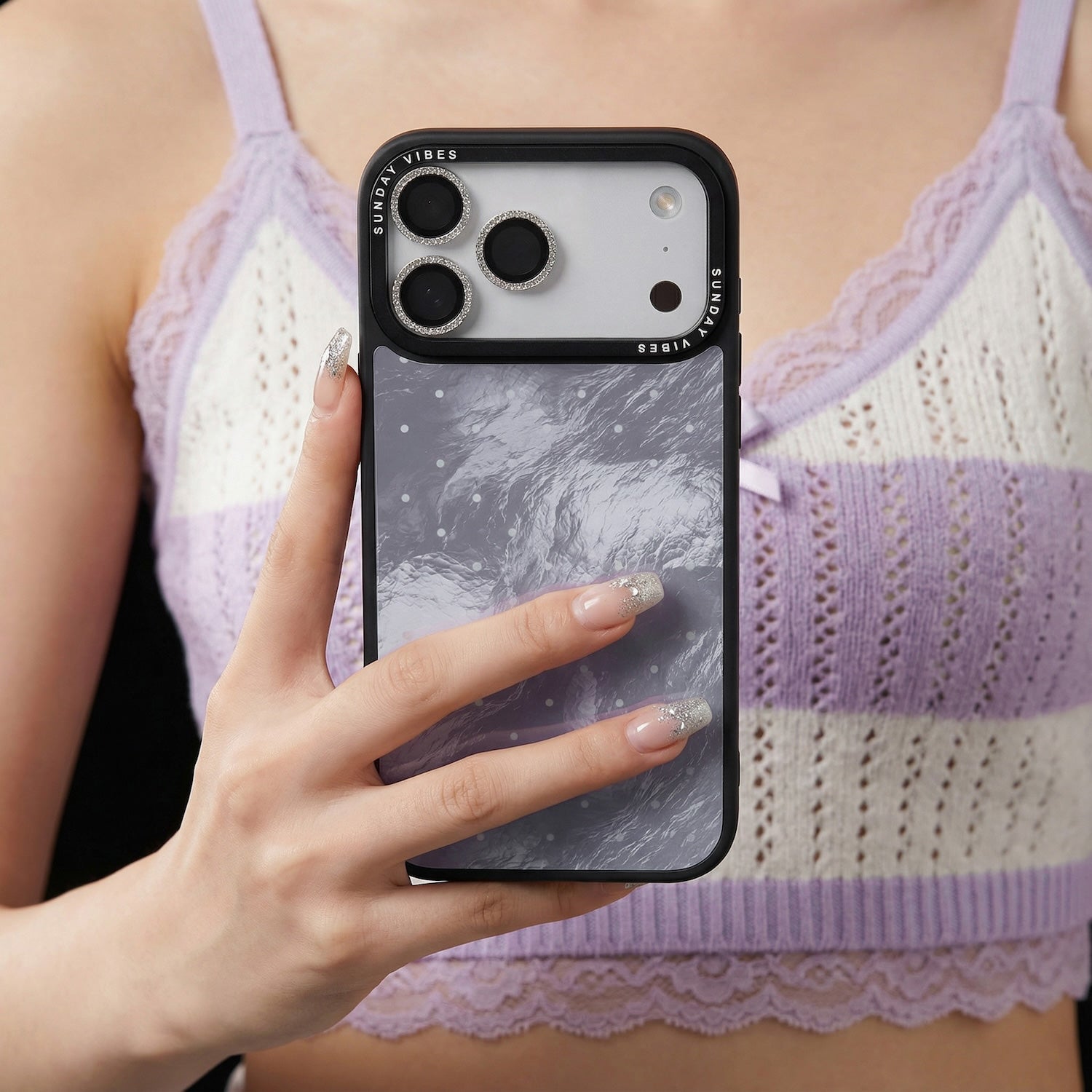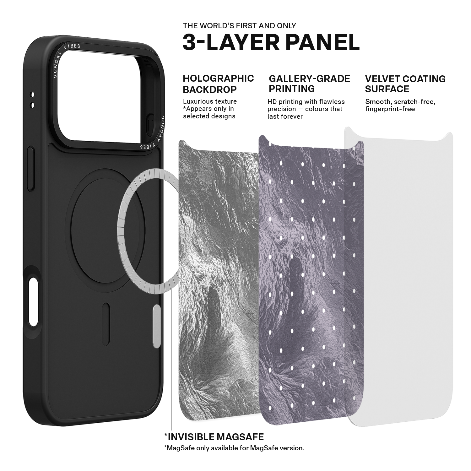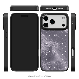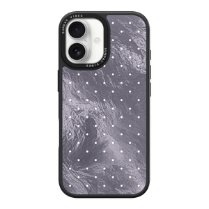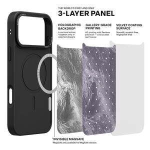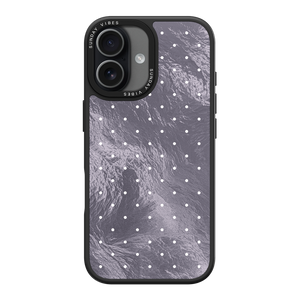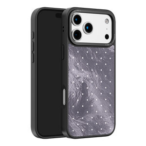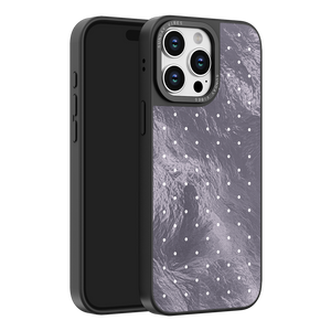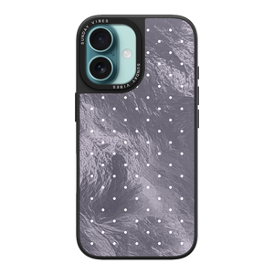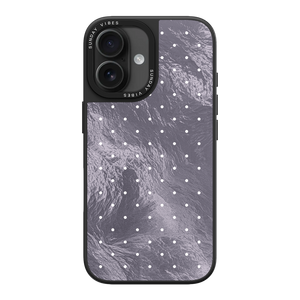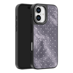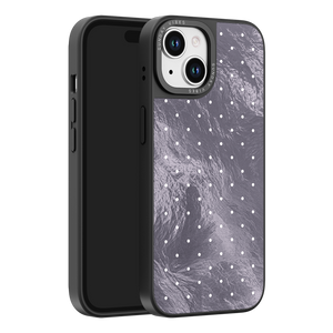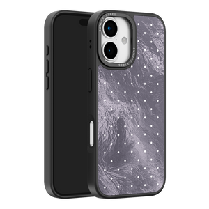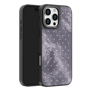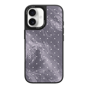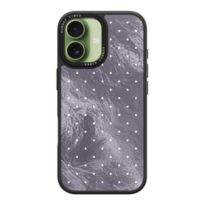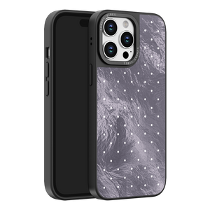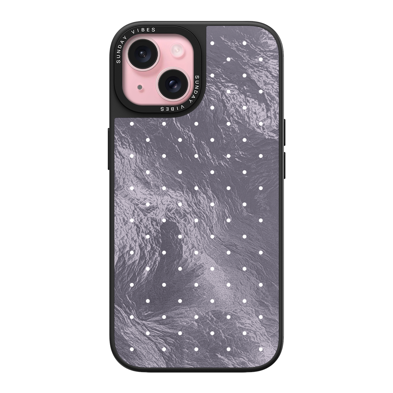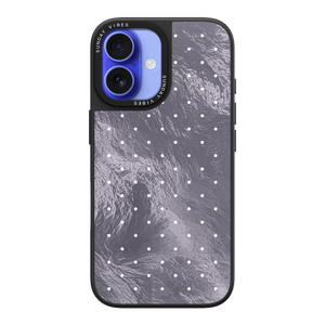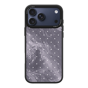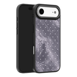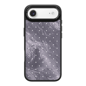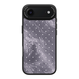 Adorn your device with the ethereal charm of the Silver Moon Dots iPhone Case, silver addon a bit purpleish. This dreamy design features crisp white dots scattered across a pale very light purple/blue holographic background that shimmers and shifts, evoking a serene sky or sparkling water. This gentle yet glamorous aesthetic ensures your phone is a truly captivating accessory. The structural integrity is delivered via a premium 3-layer back panel: featuring a base holographic layer with texture, an ultra HD gallery print layer, and a velvet smooth anti-scratch and anti-fingerprint top coating.