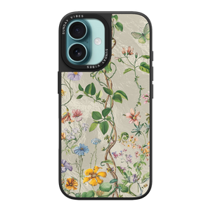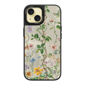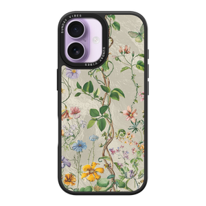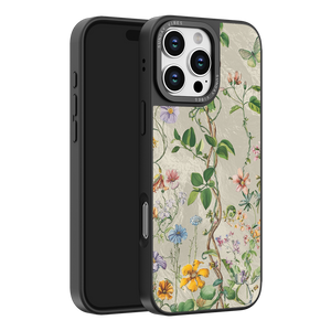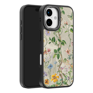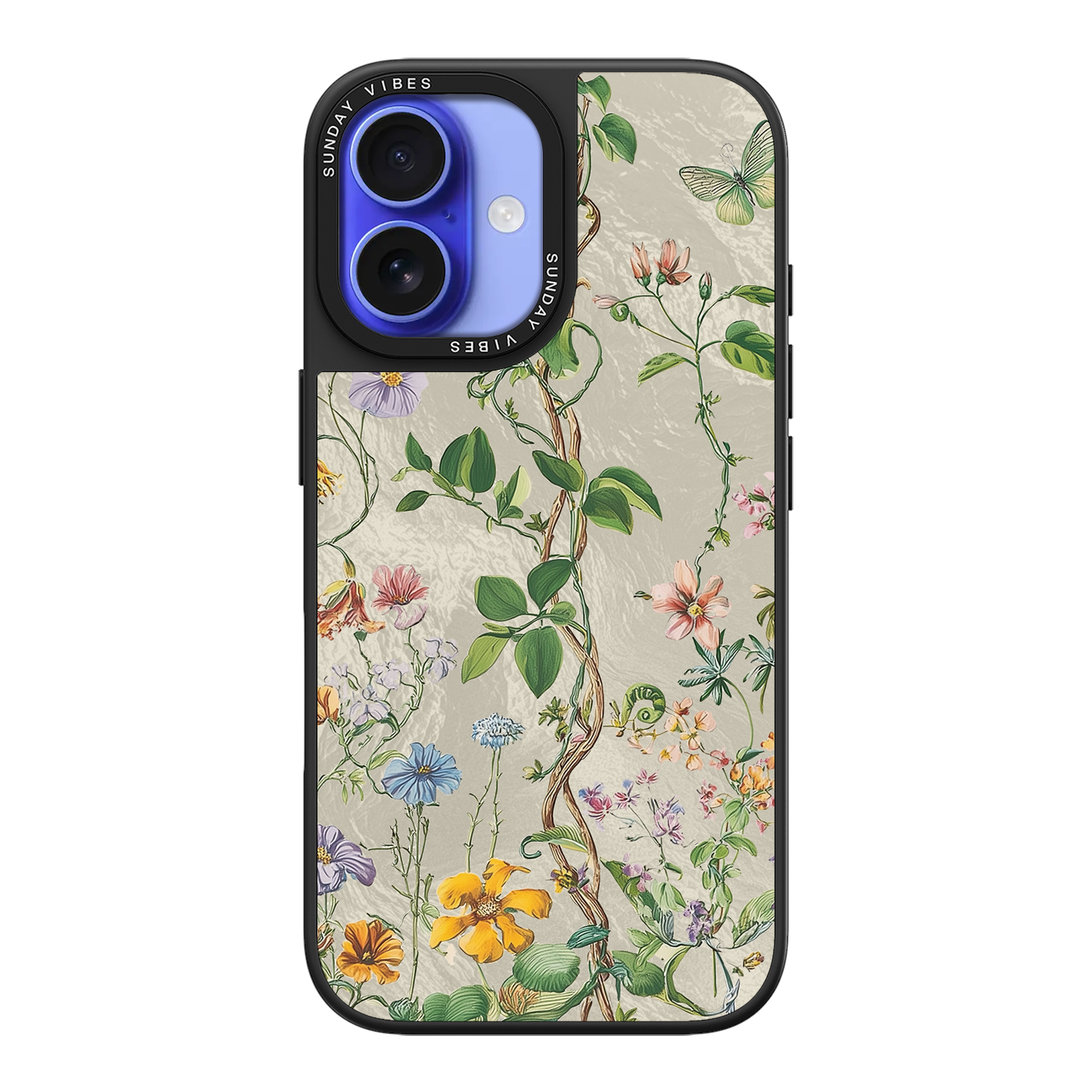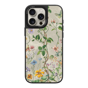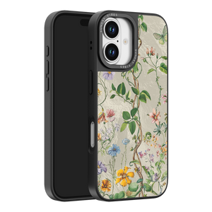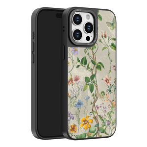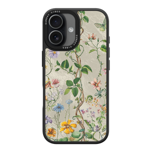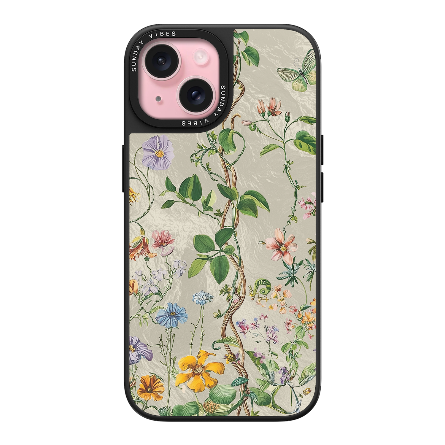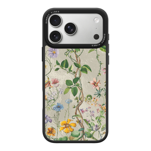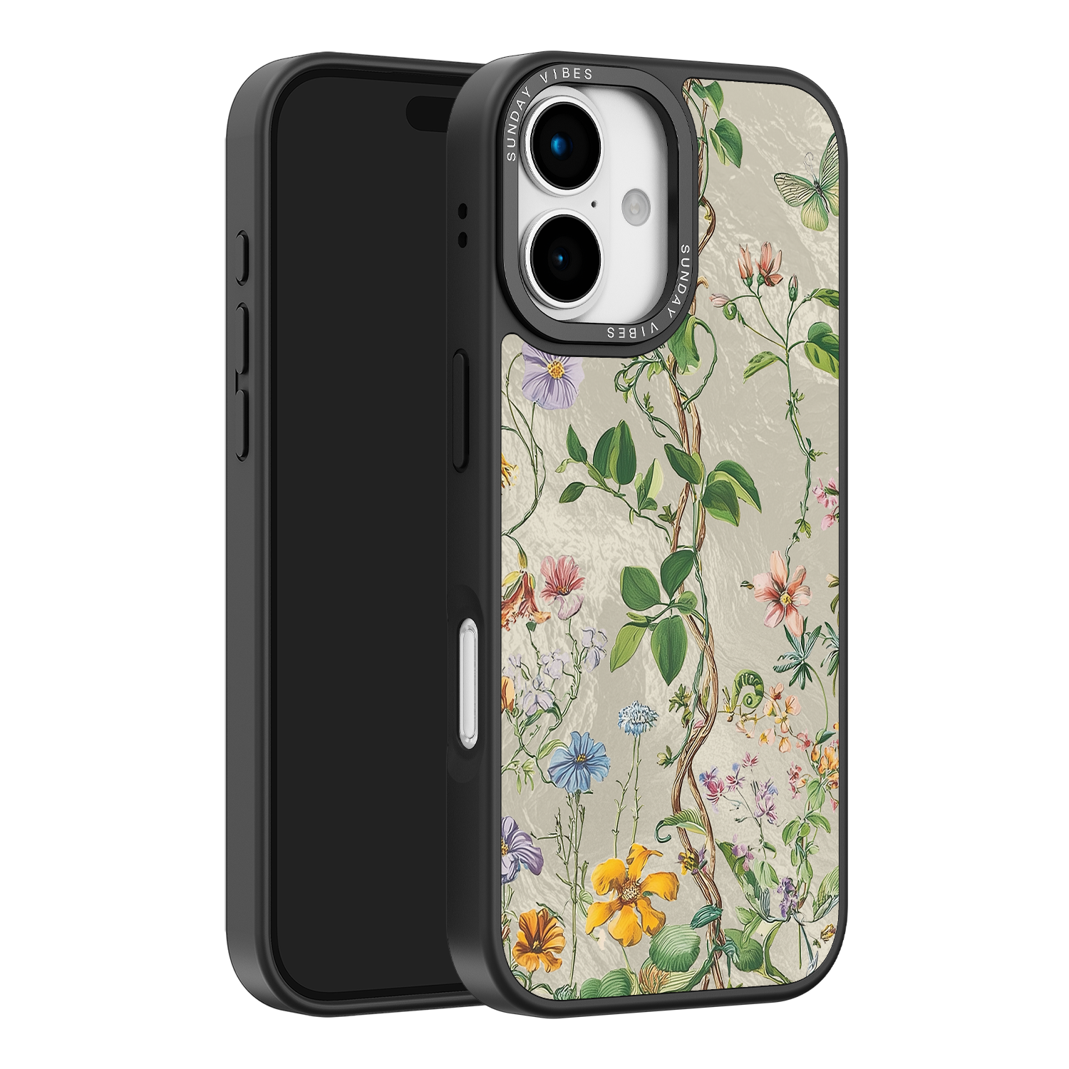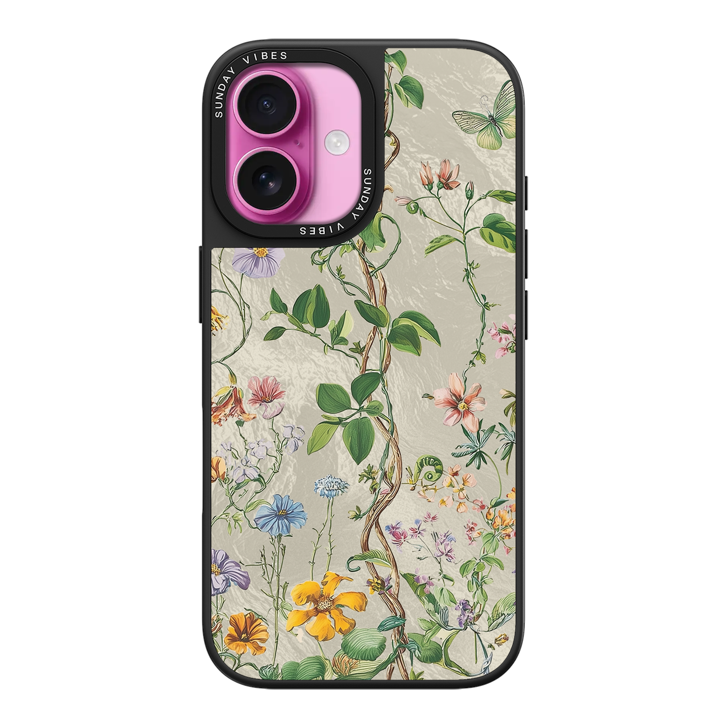 Adorn your device with the elegant artistry of the Silver Vine iPhone Case. This striking design features a detailed botanical illustration of an intricate climbing vine and colourful wild flowers. The beautiful print is set against a dramatically textured, silver holographic background witha little bit gold that shimmers and shifts, merging vintage detail with a sophisticated metallic aesthetic. The case is built with a premium 3-layer back panel: a base holographic layer with texture, a middle ultra HD gallery print layer, and a velvet smooth anti-scratch and anti-fingerprint top coating.