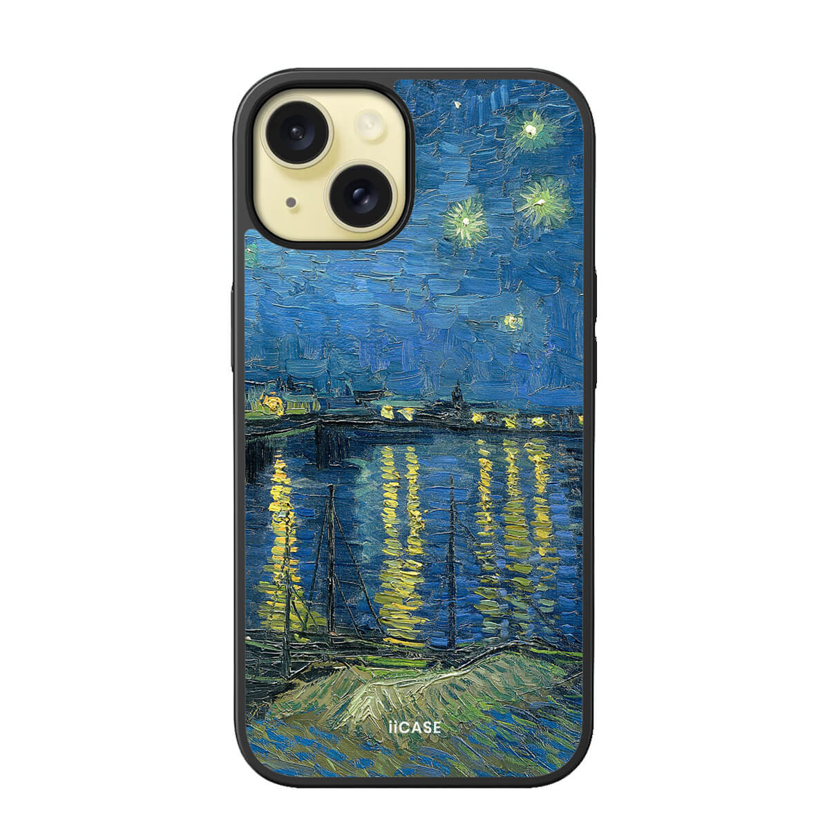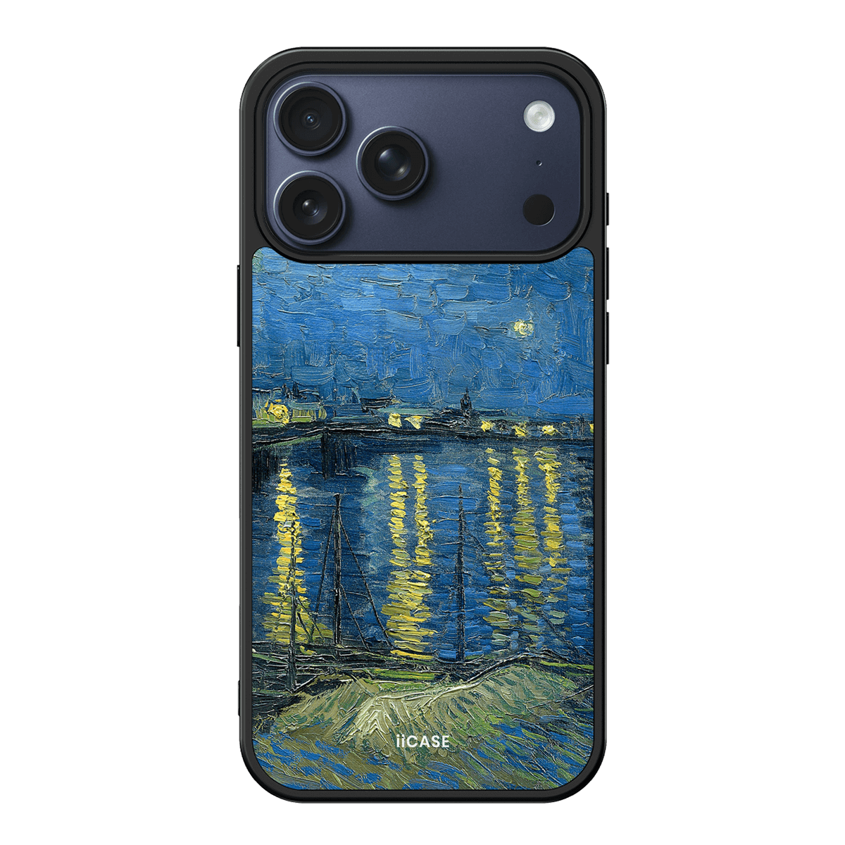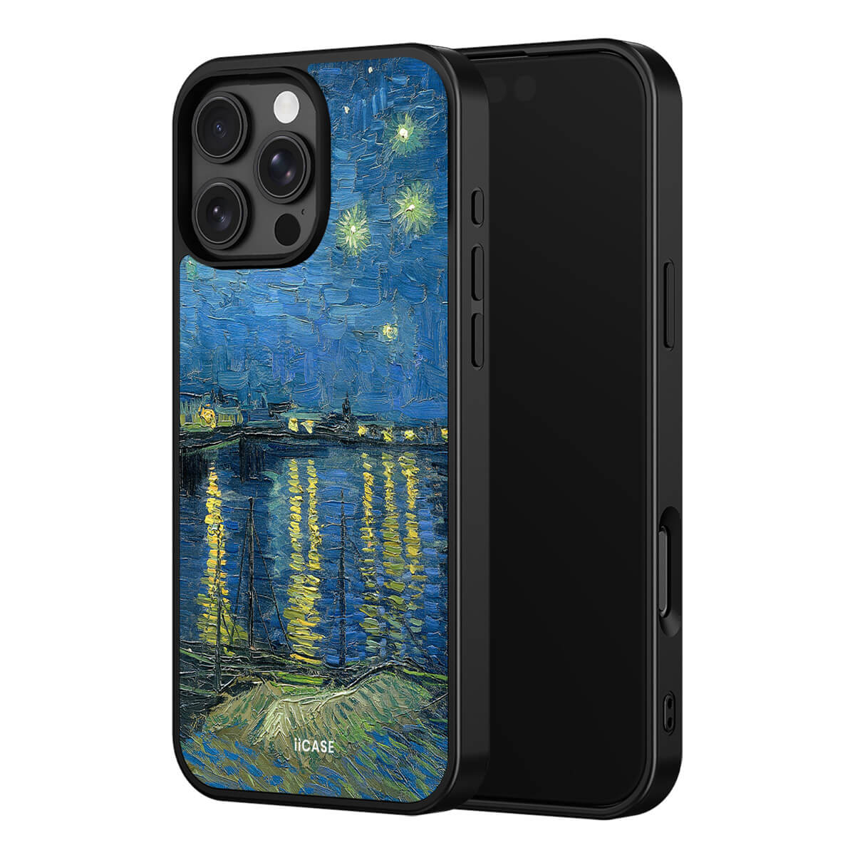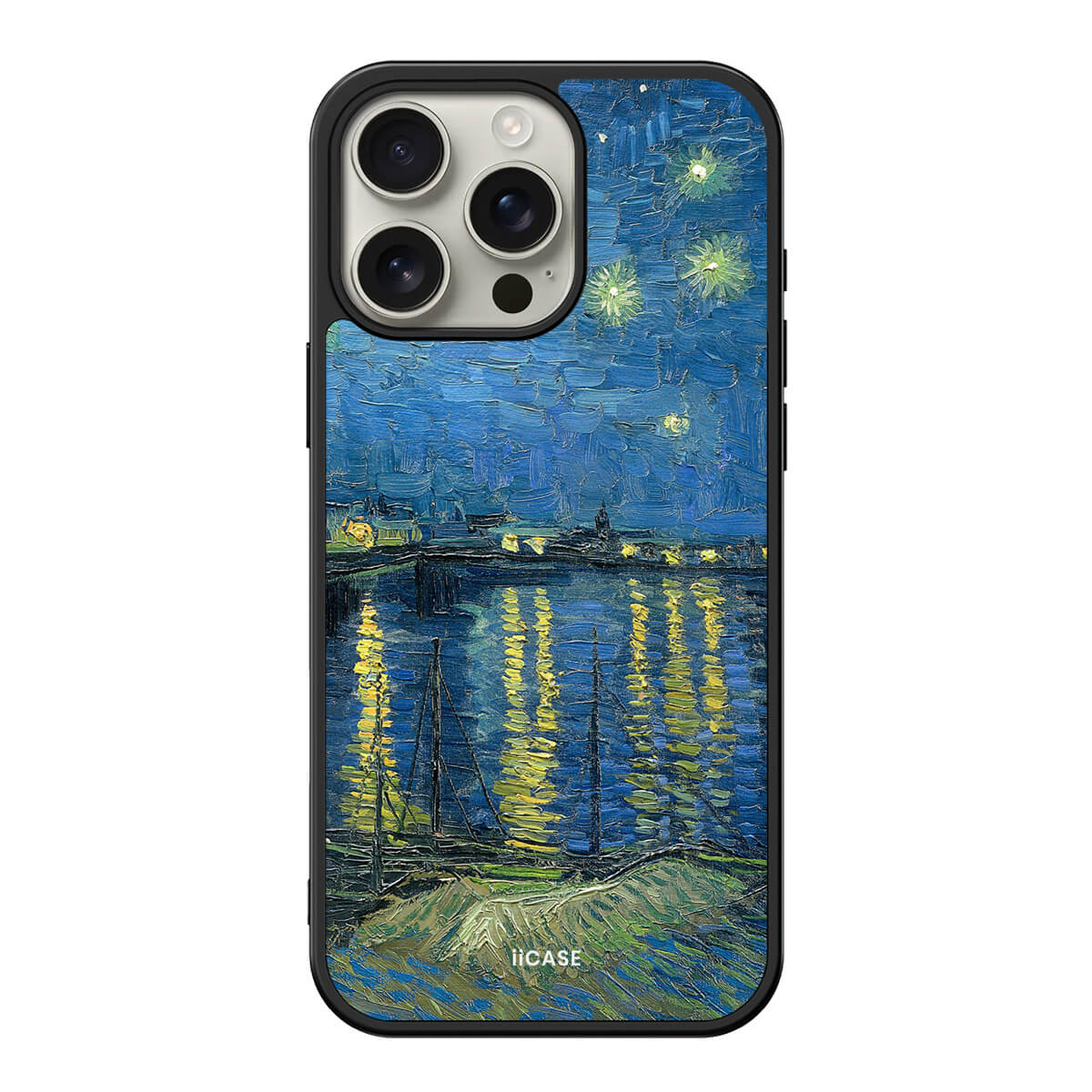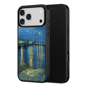 Embrace the night with the "Starry Night Over the Rhône" Elite iPhone case, inspired by Vincent van Gogh. This artistic accessory combines impeccable style with robust protection, ensuring your device stands out with timeless beauty.