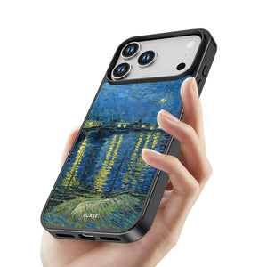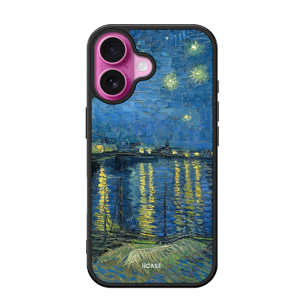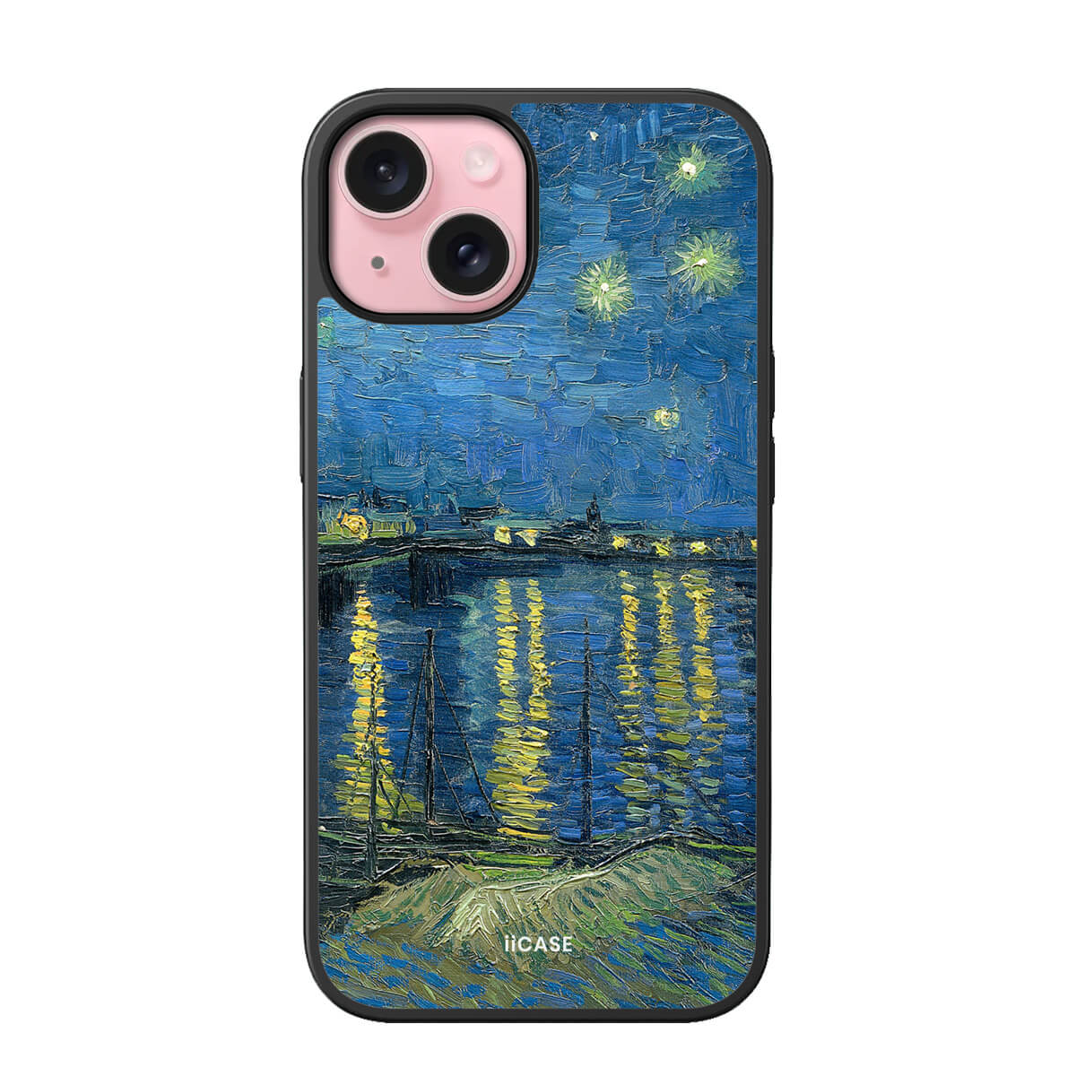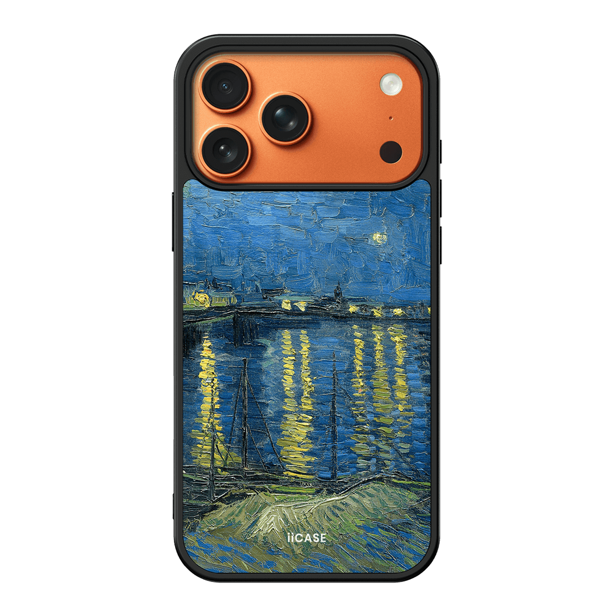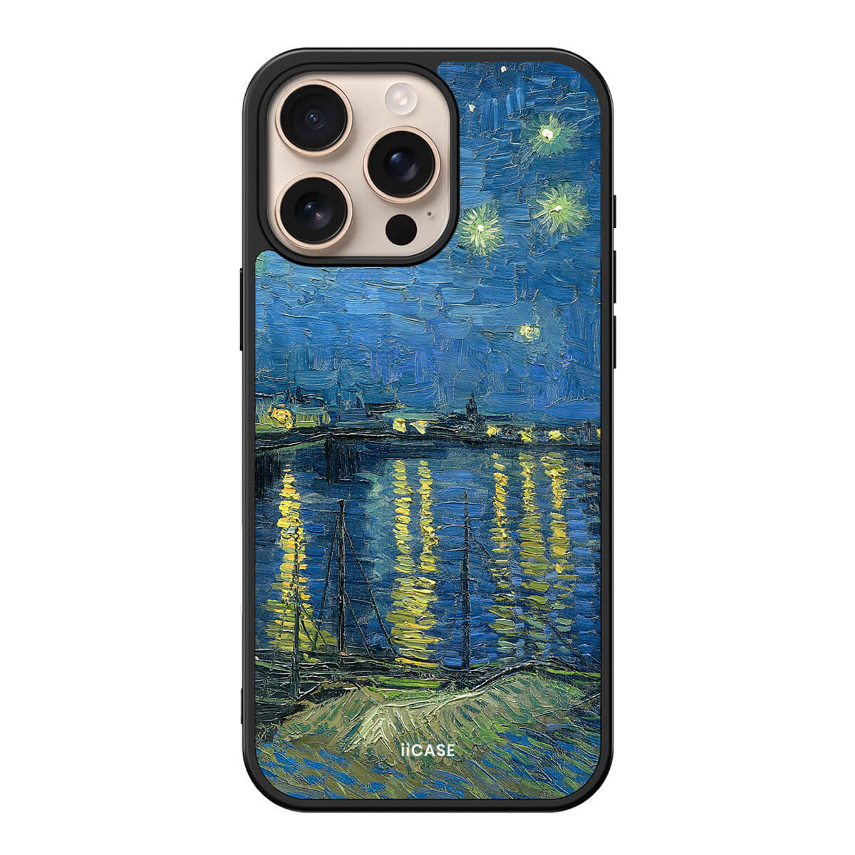 Embrace the night with the "Starry Night Over the Rhône" Elite iPhone case, inspired by Vincent van Gogh. This artistic accessory combines impeccable style with robust protection, ensuring your device stands out with timeless beauty.