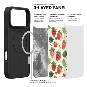 Capture the sweet, summery charm of the Strawberry Fields iPhone Case. This delightful design features a beautiful watercolour pattern of ripe, juicy red strawberries and deep green leaves, scattered across a light, creamy canvas. This fresh, artistic aesthetic ensures your phone is an instantly stylish and cheerful accessory. The core aesthetic integrity is preserved by the case's premium 3-layer back panel: a base layer for protection, a middle ultra HD gallery print layer for precise detail, and a velvet smooth anti-scratch and anti-fingerprint top coating.