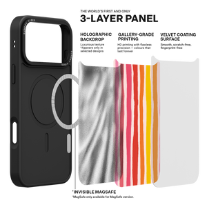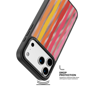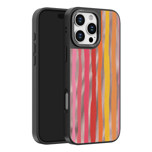 Capture a kinetic, fiery cascade of colour with the Sunset Strokes iPhone Case. This striking design showcases vibrant, hand-painted vertical ribbons—blending pink, coral, and molten orange—flowing across a dramatically textured, light-shifting metallic background. This fusion of expressive artistry and glamorous, shimmering texture ensures your phone is a constantly evolving, unique statement piece. The structural integrity is delivered via a premium 3-layer back panel: featuring a base holographic layer with texture, an ultra HD gallery print layer for vivid colour retention, and a velvet smooth anti-scratch and anti-fingerprint top coating.