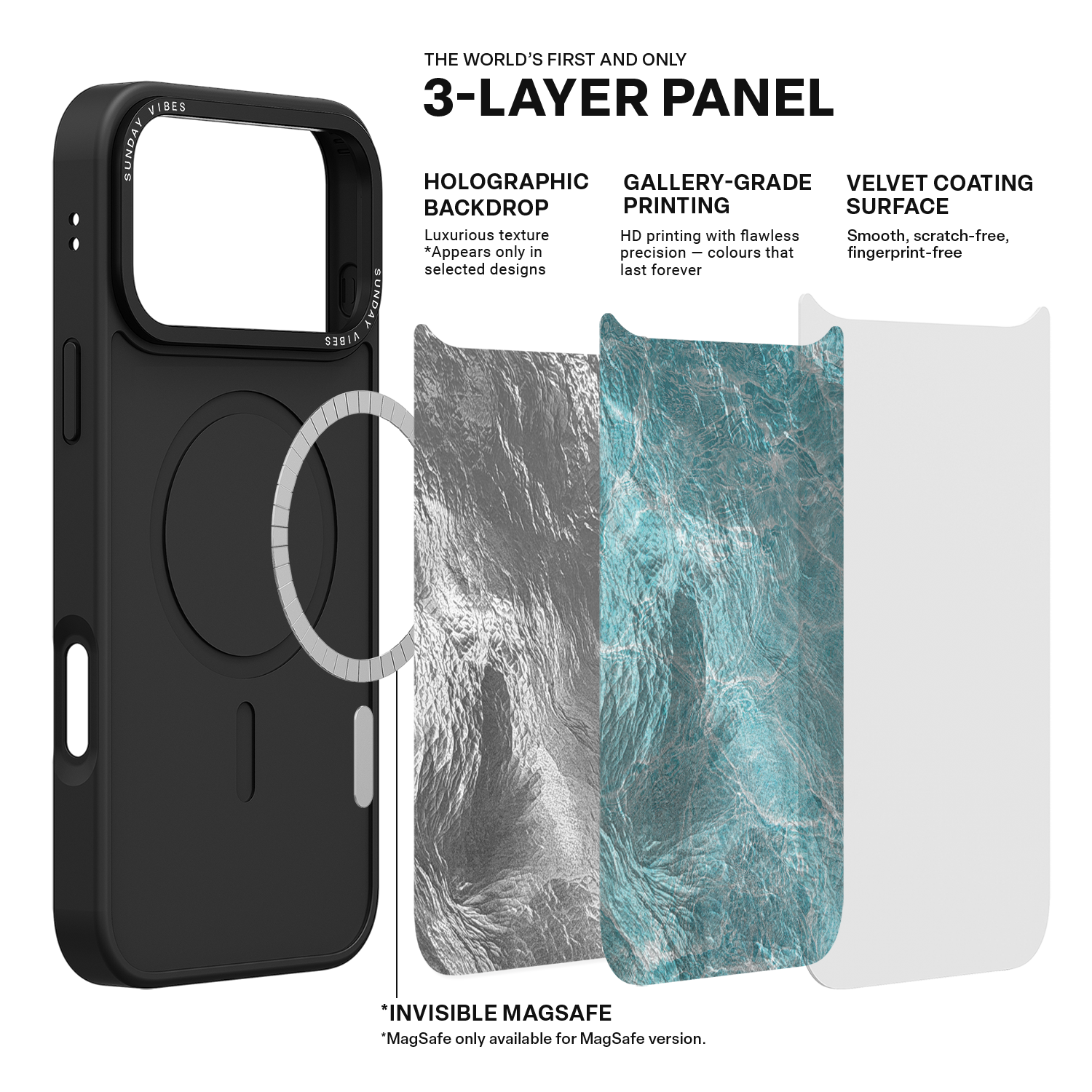 This protective phone case is built for robust daily protection. Its shockproof design is enhanced by raised camera and front bumpers, offering comprehensive screen and lens protection. Built with a premium 3-layer back panel and crafted to be incredibly slim and lightweight, it fits effortlessly. For MagSafe version cases, an invisible built-in MagSafe function is included, providing enduring quality and reliable safety for your device.