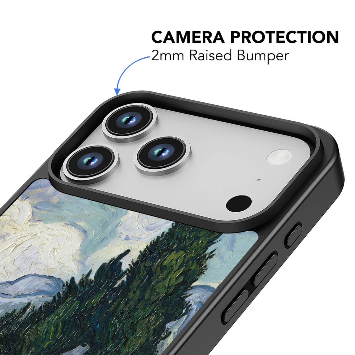 Capture the essence of Van Gogh's "Wheatfield with Cypresses" with this Elite iPhone case. Not only does it protect your device with style, but it also turns it into a masterpiece of classical art.
